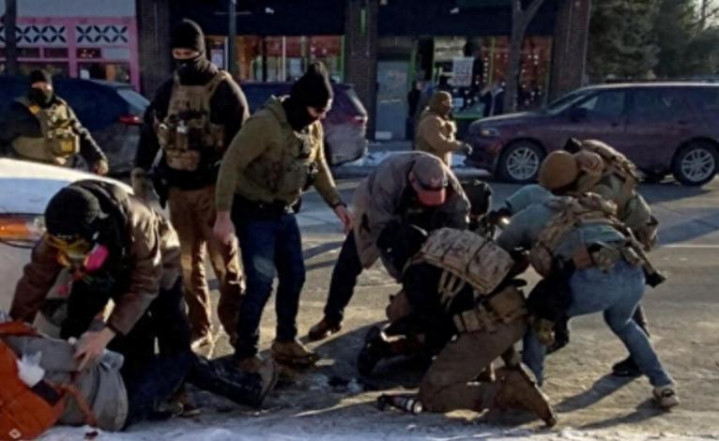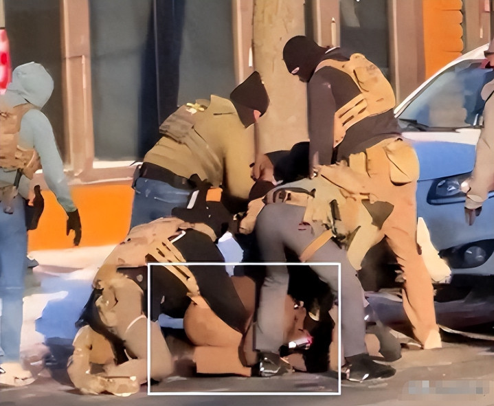 据现场视频显示,普雷蒂并没有任何攻击举动,只是举着手机在拍摄。可七名蒙面特工却把他按倒在地,暴力围殴。